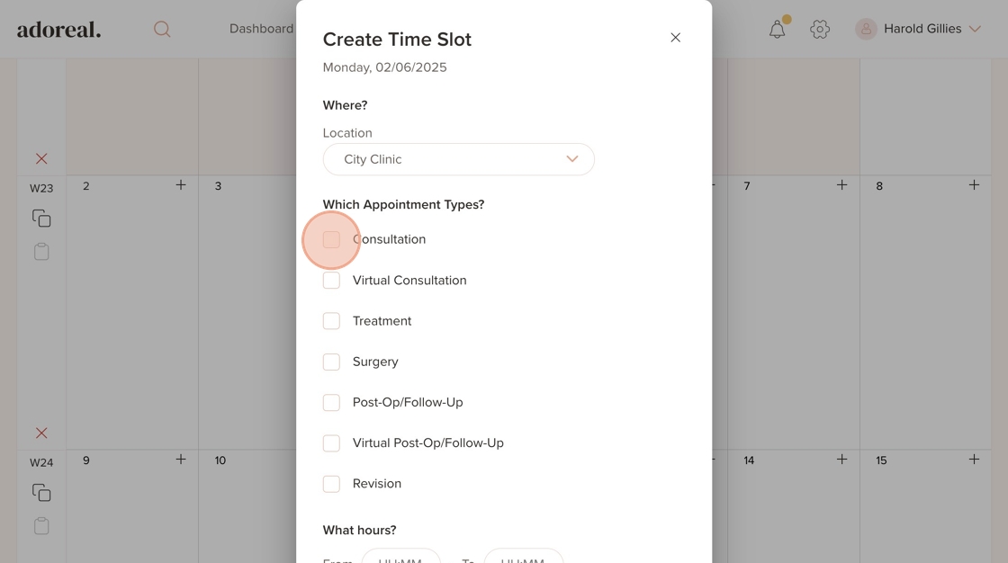 11. Make sure to choose every appointment type the treatment provider should be available for, these will be visible and bookable for patients