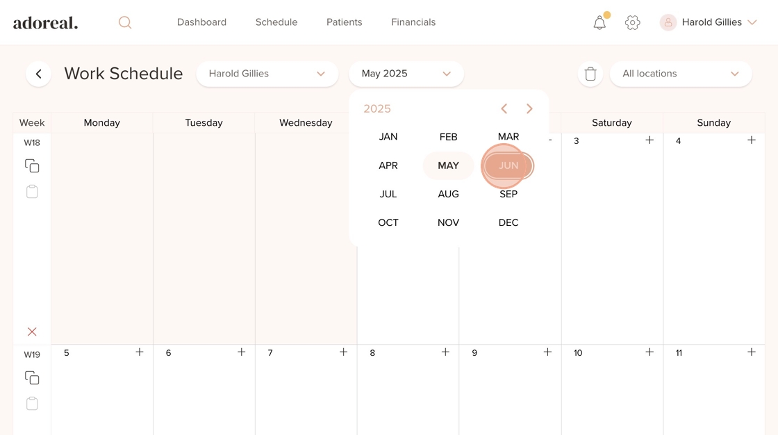 6. Select the month in which you’d like to add a schedule