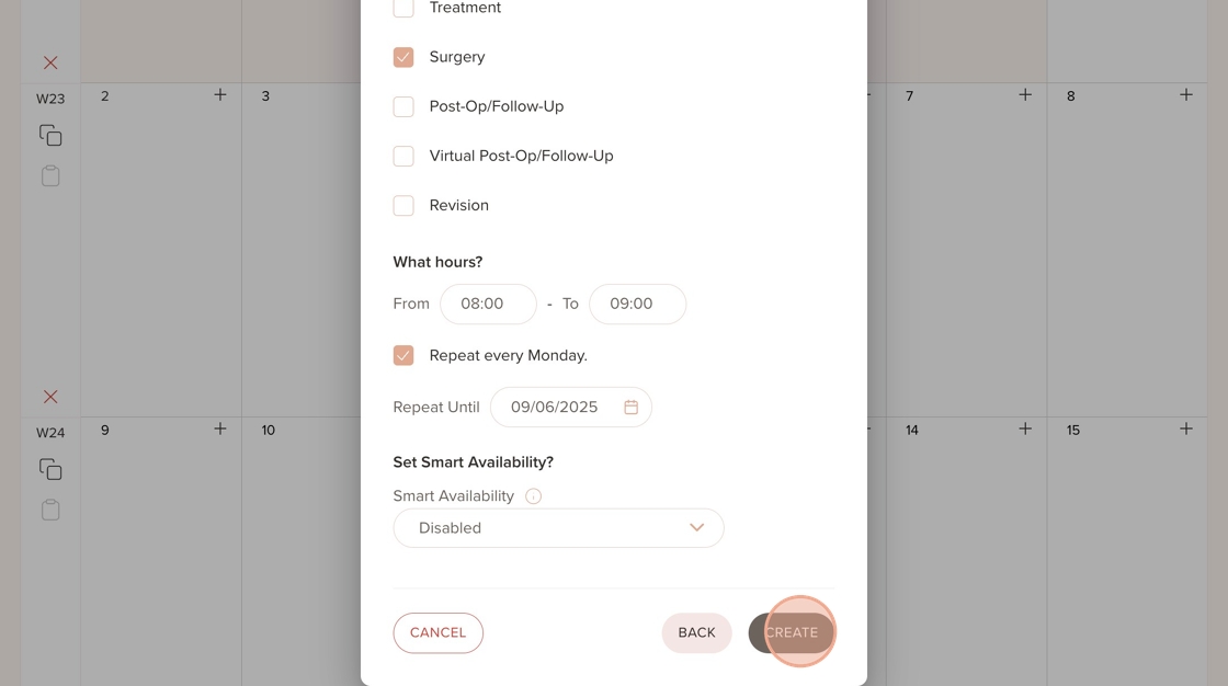 Once those steps are completed, you’re ready to set up availability. Without it, services won’t appear in the booking widget on your website, and patients won’t be able to book so this step is essential.