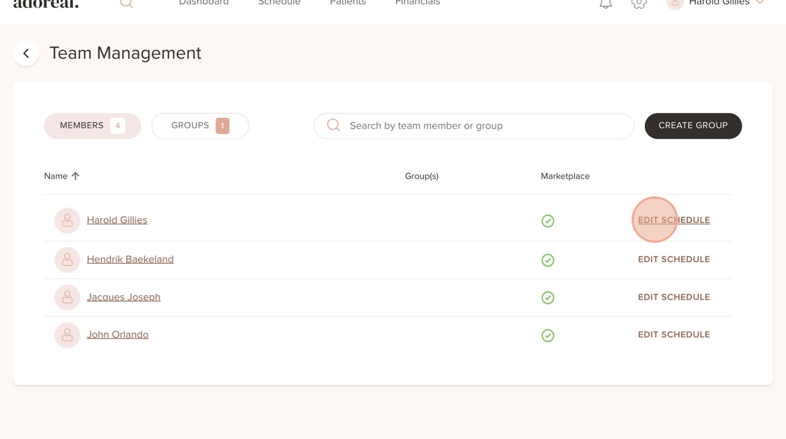 3. Click on "Edit Schedule" for a Treatment Provider