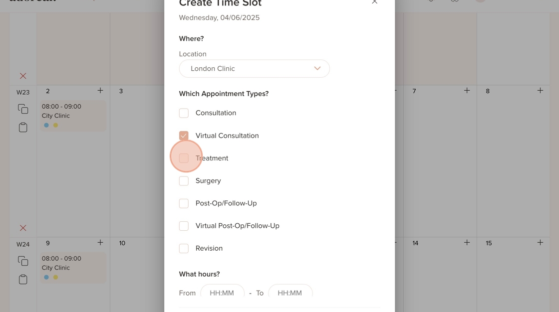 21. Select all the appointment types you want the treatment provider to be available for