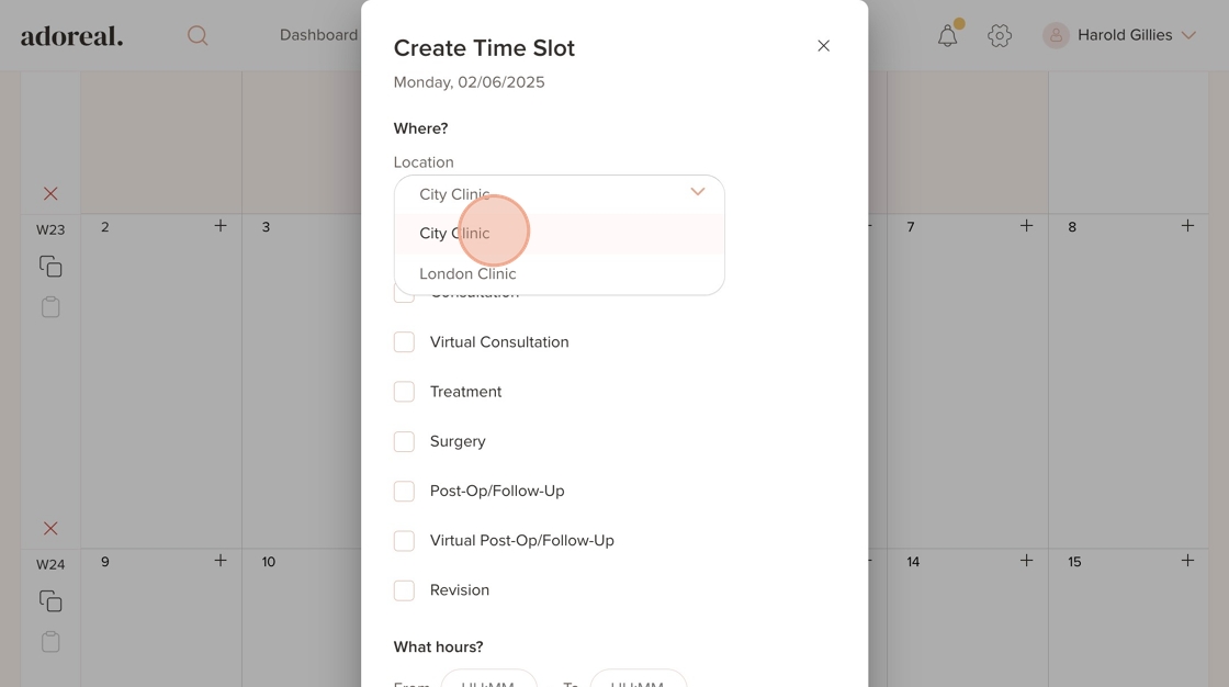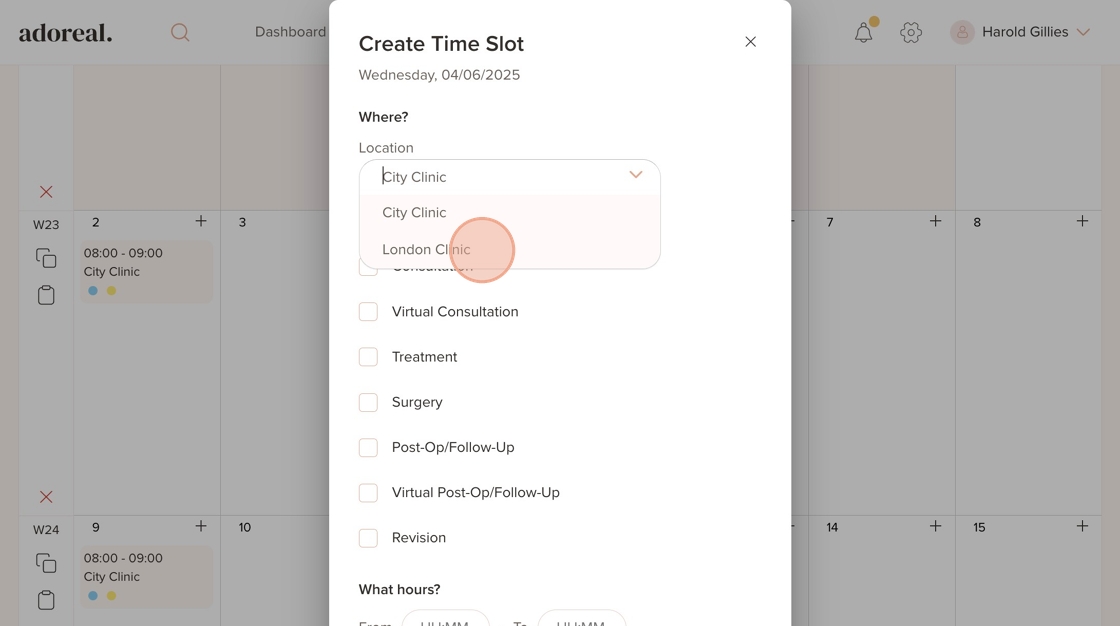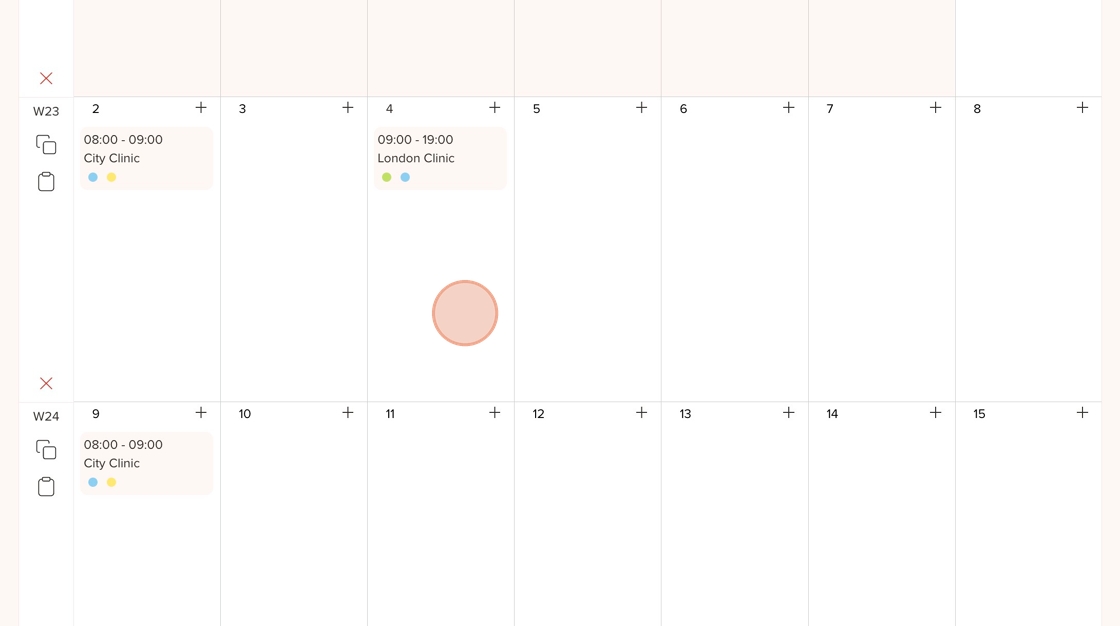 25. Here, you’ll see the availability you just added for the London Clinic location displayed in the schedule