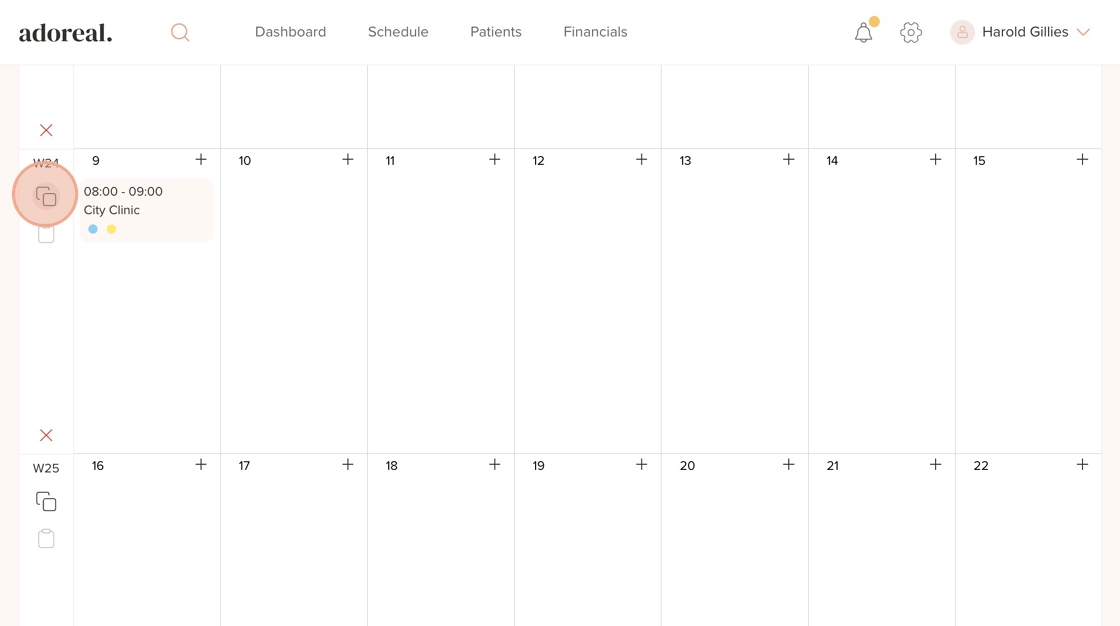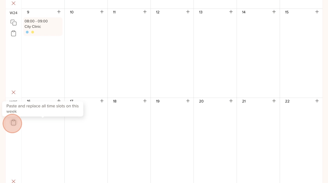 17. Use this icon to paste the copied schedule into the following week, applying all the same availability settings