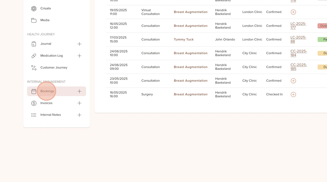 In this article, you’ll learn how to navigate the final sections of Patient 360: Bookings, Invoices, and Internal Notes. These tools help you manage appointments, view invoice details, and keep internal records — all in one place.