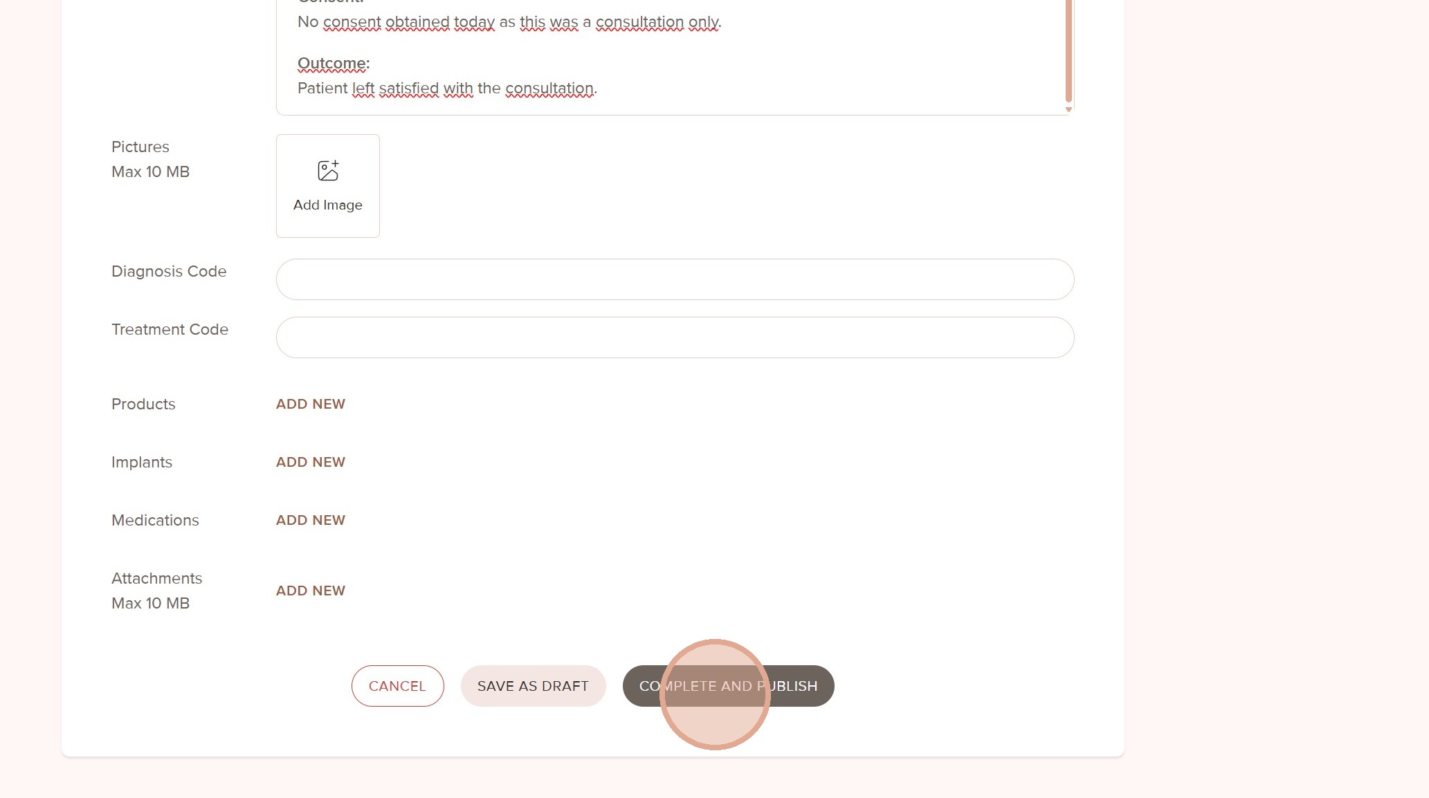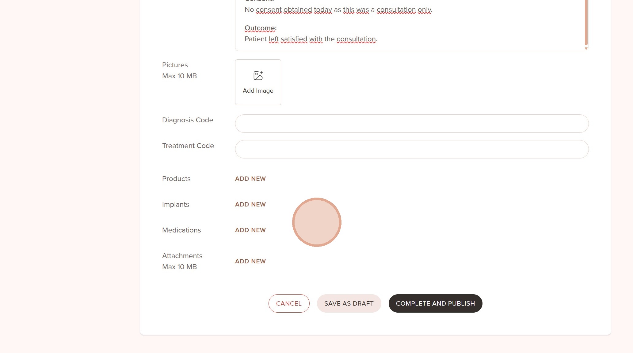 13. If needed, add attachments, images, products, implants, or medications to complete the documentation.