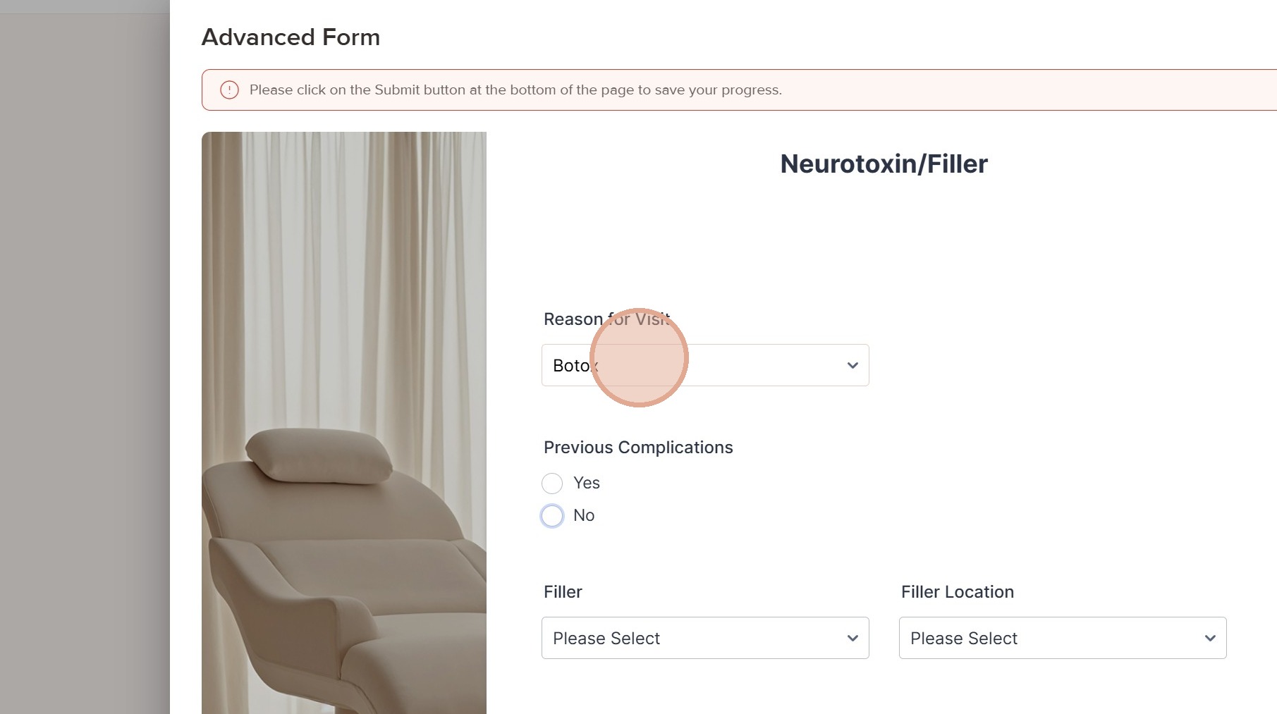 7. Complete the template using the available fields, such as dropdown menus, radio buttons and drawings